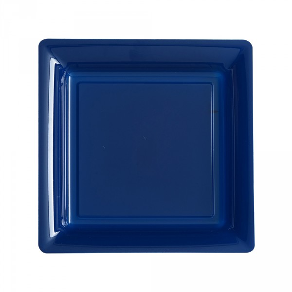 Assiettes carrées, de 23.5 cm de coté, en plastique (PS) de couleur bleu marine