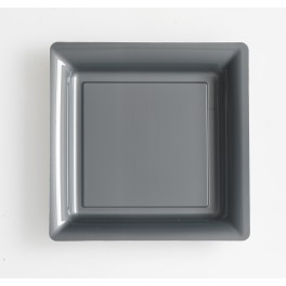 Petites assiettes carrées, de 18 cm de coté, en plastique (PS) de couleur gris argenté. Idéales pour la présentation d'une entrée ou d'un dessert. Vendues par sachet de 12 pièces.